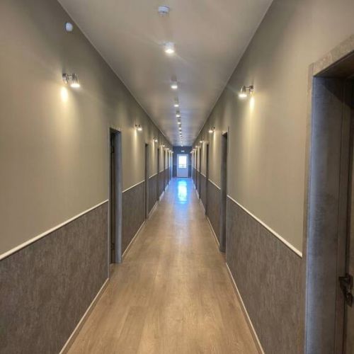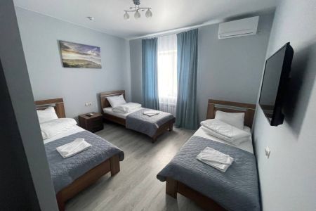 Отель занимает большую благоустроенную и хорошо озелененную территорию. Жилой фонд состоит из стандартных номеров на одного, двух или трех гостей. Все комнаты минималистично оформлены в нейтральных тонах, располагают удобными спальными местами, индивидуальным санузлом с душевой. Везде доступно подключение к Wi-Fi.