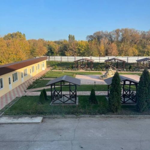 В отеле открыт ресторан, где подают блюда кавказкой и европейской кухонь. Предусмотрены банкетный зал на 150 посадочных мест и VIP-зал на 16 человек. Во дворе установлены летние и зимние деревянные беседки. На территории выделено место под парковку.